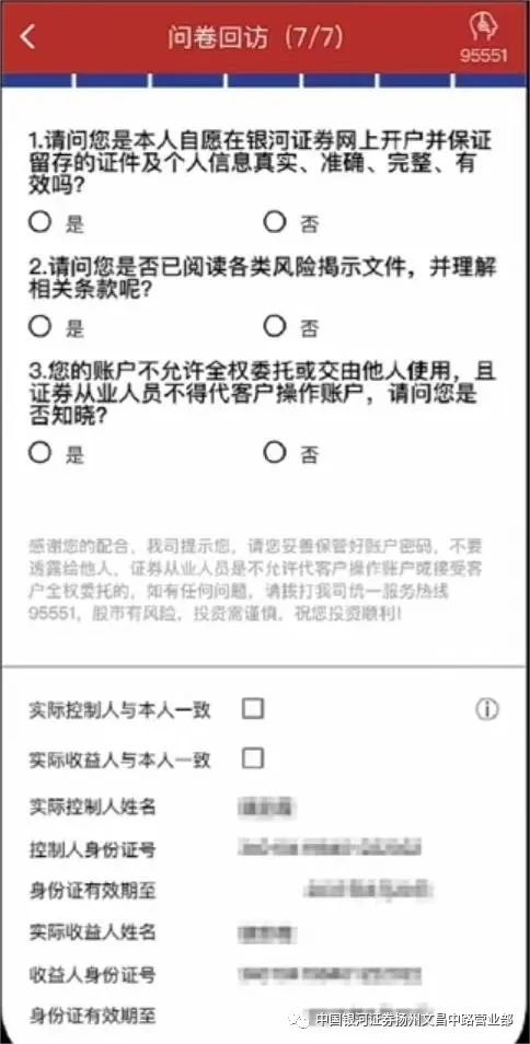 12.半小时内会有95551电话回访,一定要接,根据问题如实回答“是”或“否”。