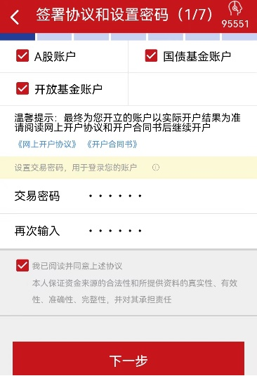 注意:收到成功开户短信后,请手机自带应用商店下载App:中国银河证券,然后用短信中的信息登录,等会成功后,底部点“交易”,点击“业务办理”,滑下来点击“待确认业务”,点击确认佣金。方可调整VIP佣金费率。请保持账户总资产大于1w保持一个月方可生效终身VIP费率。